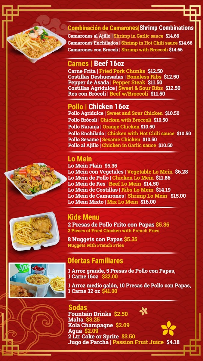Another dish that resonates with patrons is the Combi Pollo. With options like Broccoli Chicken and the succulent Pechuga A La Plancha, each plate comes complete with fried rice and fries, inviting diners to experience the delightful combination of textures and tastes for prices starting at US$15.42. If you're craving something hearty, don't miss the Lo Mein selections, available with options such as Ribs or Shrimp, priced from US$15.42 to 20.15.